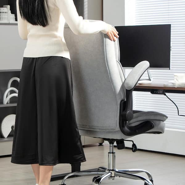 Polyester Foam Flip Up Arms, Tilt, Adjustable Height, Swivel, Executive Chairs in Light Gray