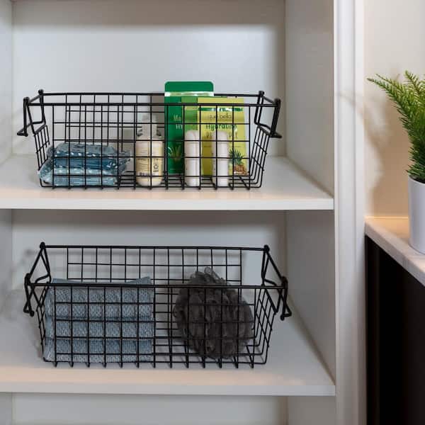 Set of 2 Storage Bins - Basket Set for Toy, Kitchen, Closet, and Bathroom Storage Organizers with Handles (Black)