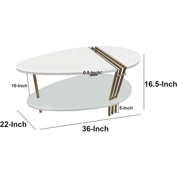 22 in. White/Antique Brass Oval Wood Top Coffee Table