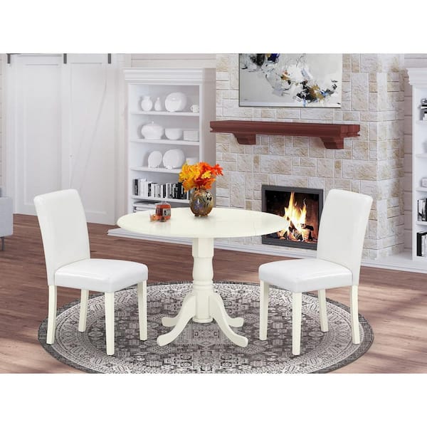 3-Piece Linen White Finish Solid Wood Top-Round Dining Room Set with Dropleaf-Seats 4