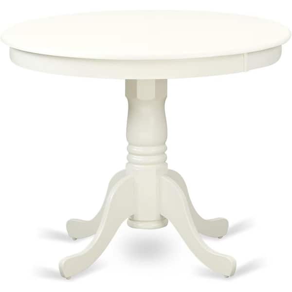 3-Piece Round Linen White Finish Solid Wood Top Dining Table with 2 Parson Chairs with Lattice Back