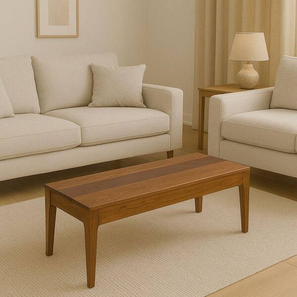 47.25 in. Natural Brown/Black Rectangle Wood Top Coffee Table