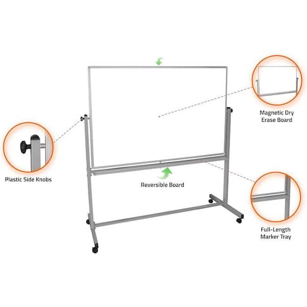 60 in. L Mobile Dry Erase Whiteboard with Casters, Durable Metal Whiteboard for Schools and Offices