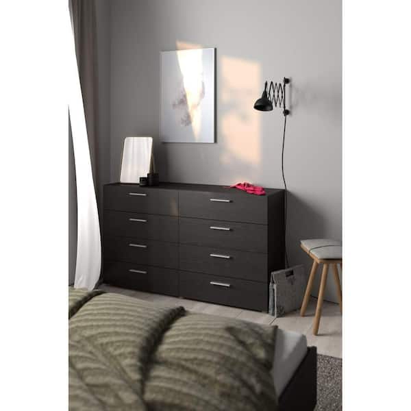 Black Woodgrain 8 Drawers 55.12 In. Chest of Drawers