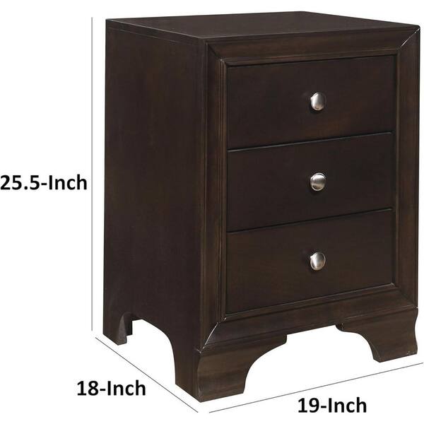 Brown/Chrome 3 Drawer 18 in. W Nightstand with Inbuilt Charging USB Port