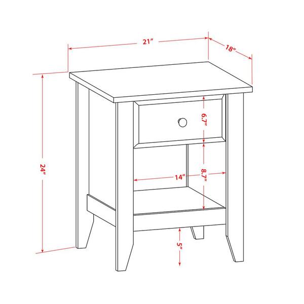 Burgundy 1-Drawer Rectangle 18 in. x 21 in. Nightstand