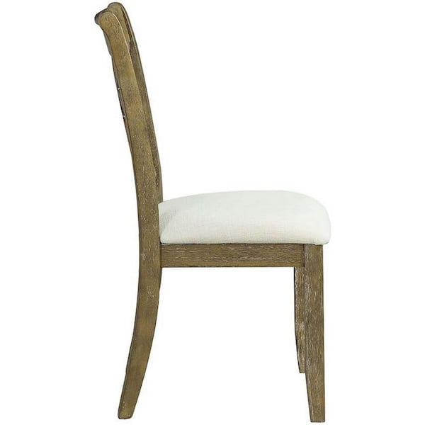 Rustic Oak/Beige Fabric Upholstered Wood Frame Dining Chair, Set of 2, Sturdy Dining Chair for Dining Rooms