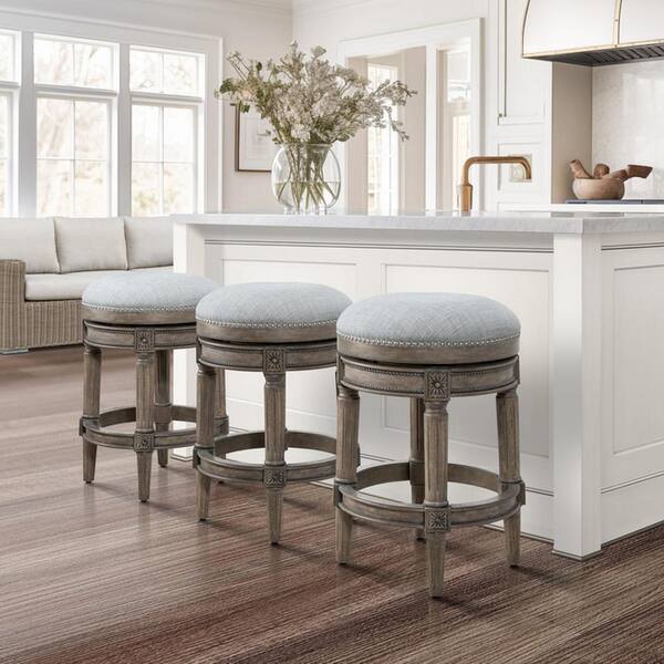 Weathered Gray Finish, Round Seat Counter-Height Bar Stool