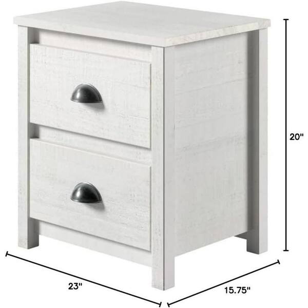 White 2 Drawer 20 in. W Nightstand, Sturdy Bedside Nightstand Table