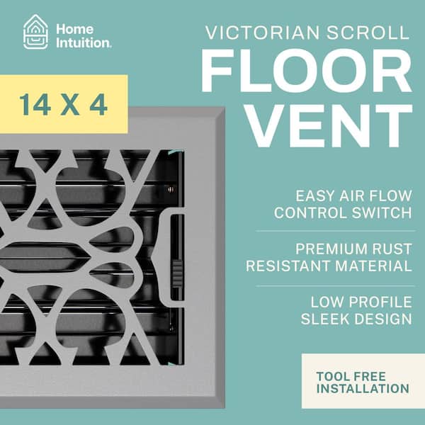 Victorian Scroll 4 in.x 14 in. Decorative Floor Register Vent with Mesh Cover Trap, Light Grey