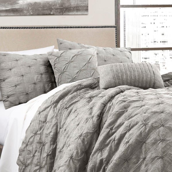 Ravello Pintuck 5 Pieces Gray Textured Microfiber King Comforter Set