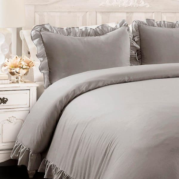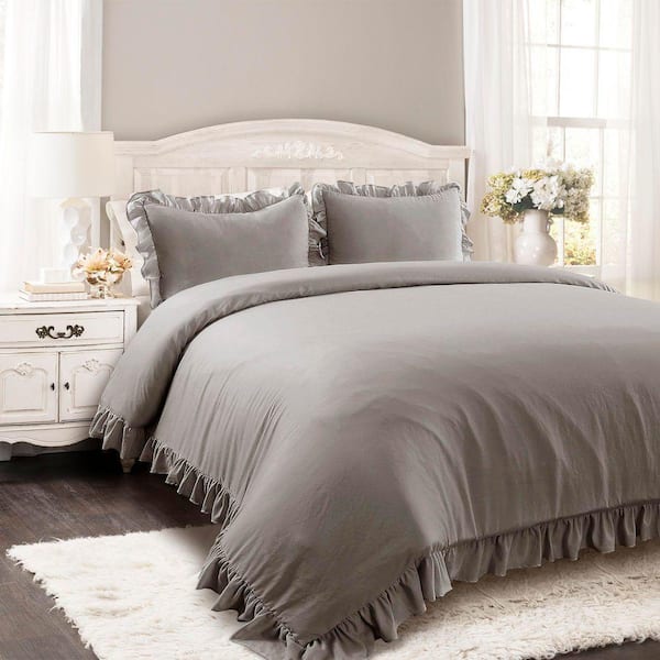 Reyna 3 Pieces Gray Ruffle Microfiber King Comforter Set