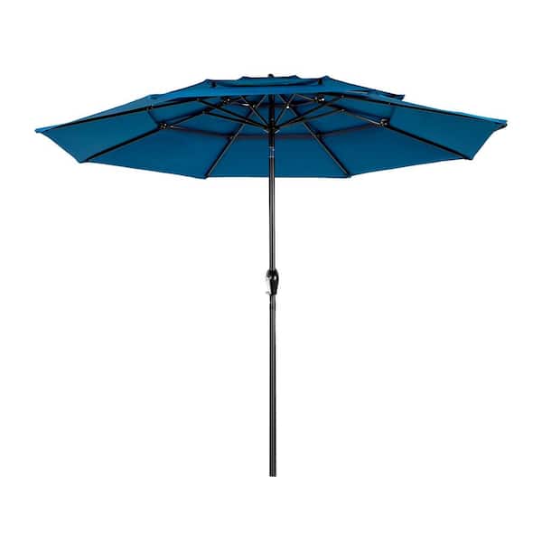 10 ft. Aluminium Outdoor Patio Umbrella 3 Tier Auto-Tilt Market Umbrella with Crank Tilt in Dark Blue