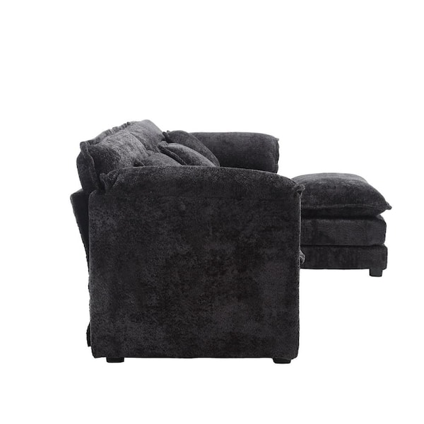 112 in. Sq. Arm 4-Piece L Shaped Chenille Modern Sectional Sofa in Black with Moveable Ottoman