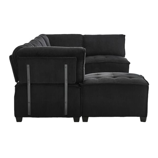 122 in. Square 6-Piece U-Shaped Corduroy Modern Sectional Sofa in Black with Moveable Ottoman