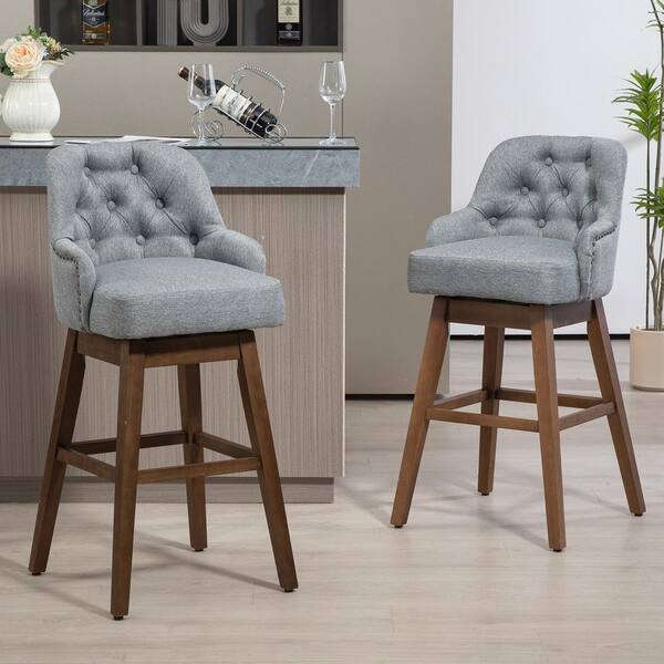 28 in. Modern Light Grey Linen Counter-Height Swivel Bar Stool with Wood Legs( Set of 2)