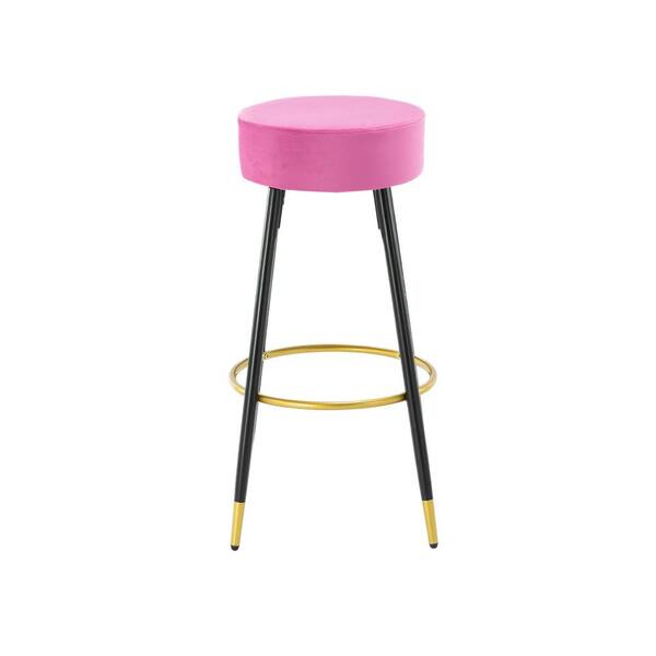 30 in. Fuchsia Metal Frame Bar Stool with Velvet Seat (Set of 2)