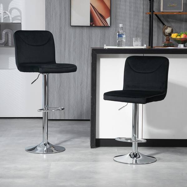 32 in. Swivel Adjustable Height Low Back Metal Frame Cushioned Bar Stool with Black Velvet Seat (Set of 2)