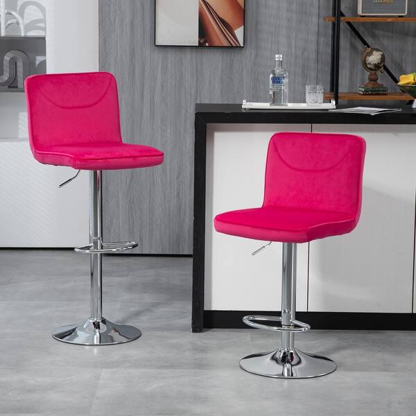 32 in. Swivel Adjustable Height Low Back Metal Frame Cushioned Bar Stool with Rose Red Velvet Seat (Set of 2)