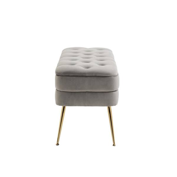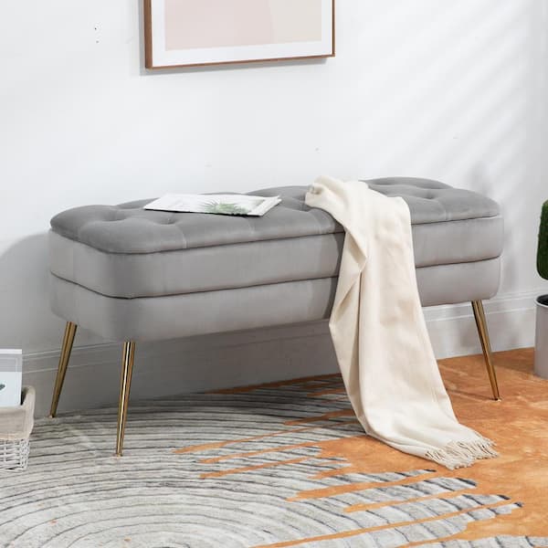 40.94 in. Modern Gray Velvet Upholstery Storage Ottomans Dining Bench with Gold Legs