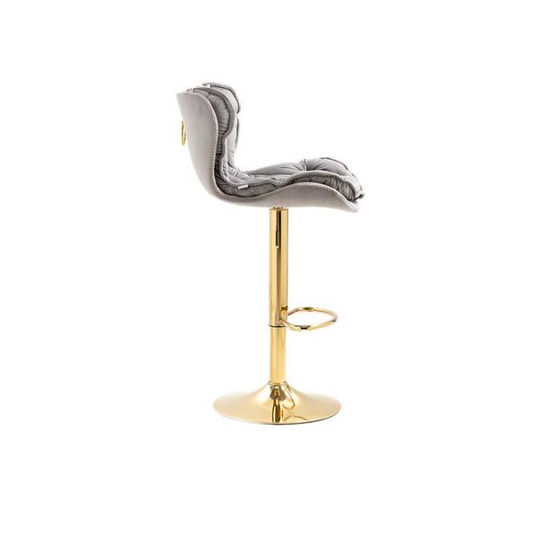 44 in. Gray Velvet Swivel Low Back Matal Frame Adjustable Cushioned Counter Height Bar Stool (Set of 2)