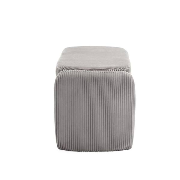 44 in. Modern Corduroy Upholstered Fabric Storage Ottoman Bench Entryway Padded Footstool in Light Gray