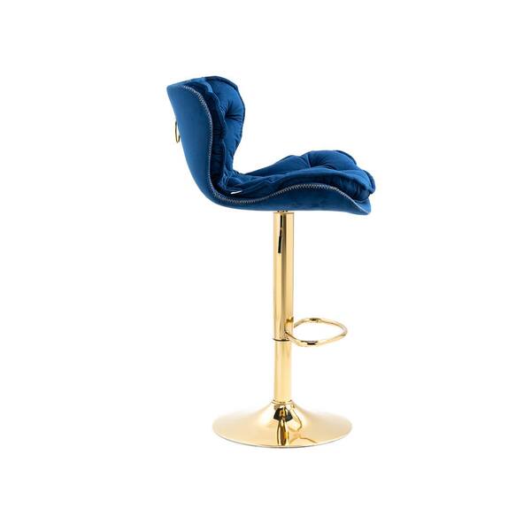 44 in. Navy Blue Velvet Swivel Low Back Matal Frame Adjustable Cushioned Counter Height Bar Stool (Set of 2)