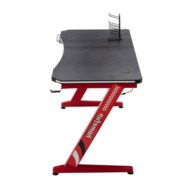 48 in. Z-Shaped Rectangular Red Carbon Fiber Surface Gaming Desk with Headphone Hook and Cup Holder