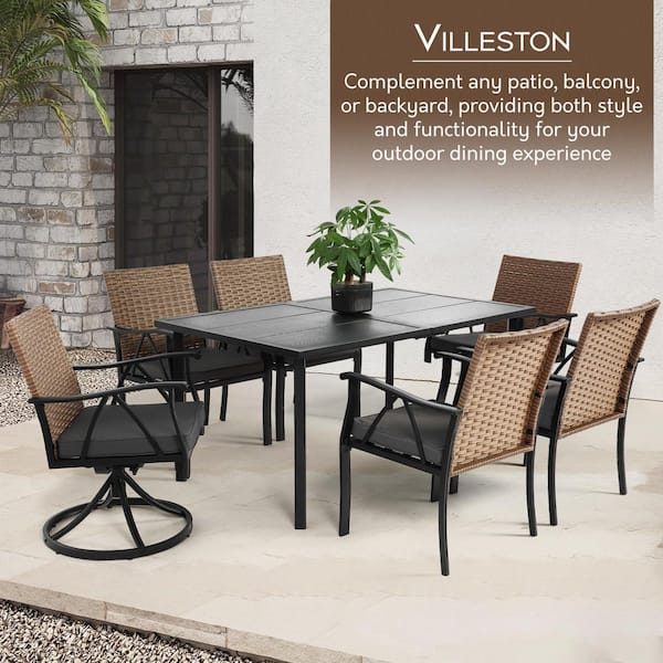 7-Piece Metal Patio Outdoor Dining Set 6 Swivel Chairs with Cushions and 1 Rectangular Table with 1.75" Umbrella Hole