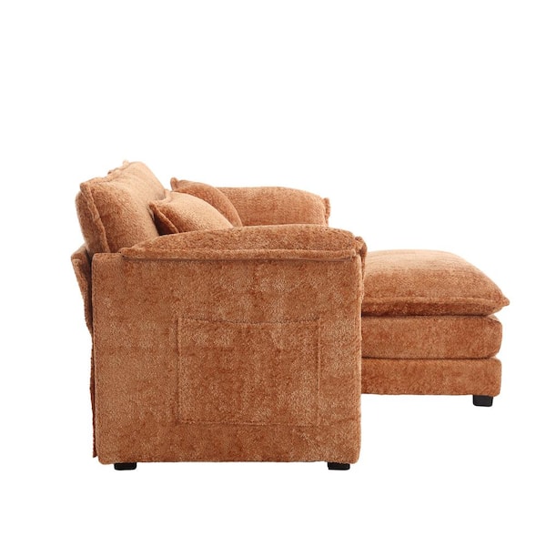 77 in. Square Arm 3-Piece L Shaped Chenille Modern Sectional Sofa in with Moveable Ottoman