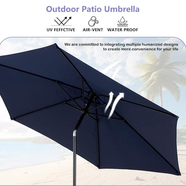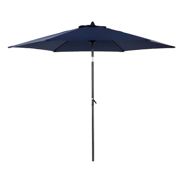9 ft. Steel Outdoor Cantilever Market Push Button Tilt Patio Umbrella with Crank Lift in Navy Blue