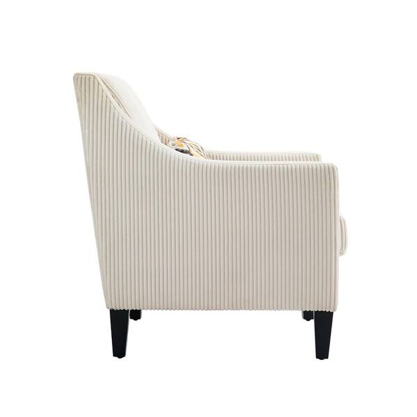 Modern Beige Corduroy Upholstered Accent Chair with Wooden Legs