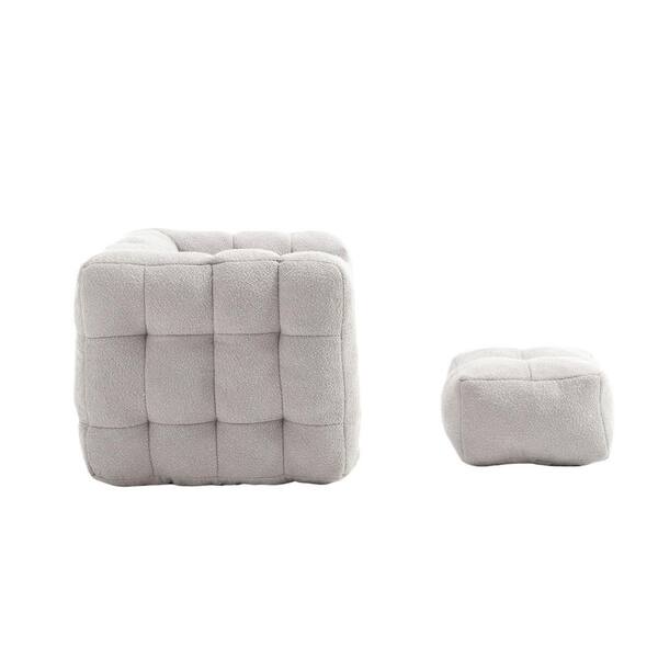 Modern Light Gray Boucle Round Square Bean Bag Accent Chair with Ottoman