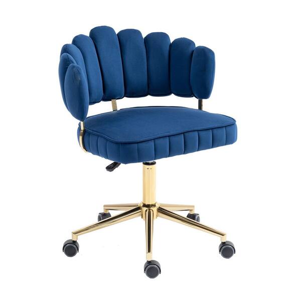 Modern Velvet Swivel Home Office Ergonomic Desk Chair in Navy Blue with Arms and Gold Base