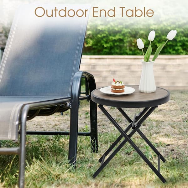 Steel Folding Patio End Table with Tempered Glass Tabletop Portable Bistro Coffee Table