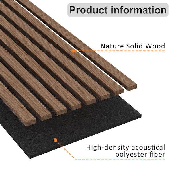 0.83 in. x 7.87 ft. x 1 ft. Slat Wood Walnut Sound Absorbing Panel (4-Pack)