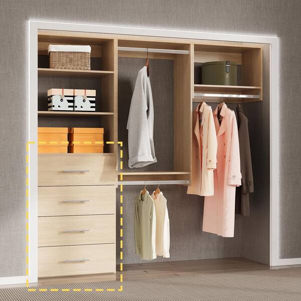 19.5 in. Wood Walk-in Modular 4 Drawers Short Tower Unit with No-Shelf, Wall Mount Wood Closet System