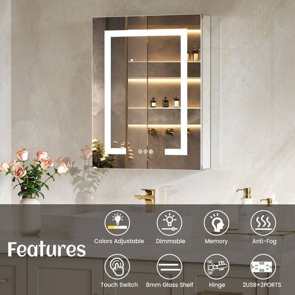 20 in. W x 26 in. H Rectangular Aluminum Medicine Cabinet with Mirror