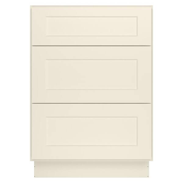 24 in. W x 24 in. D x 34.5 in. H in Antique White Plywood Ready to Assemble Drawer Base Kitchen Cabinet with 3-Drawers