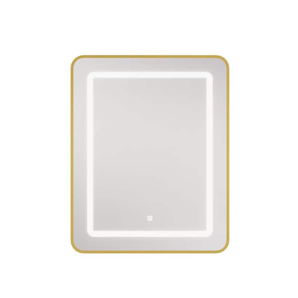 24 in. W x 30 in. H Bright Rectangular Gold Wall Mount LED Lighted Medicine Cabinet with Mirror
