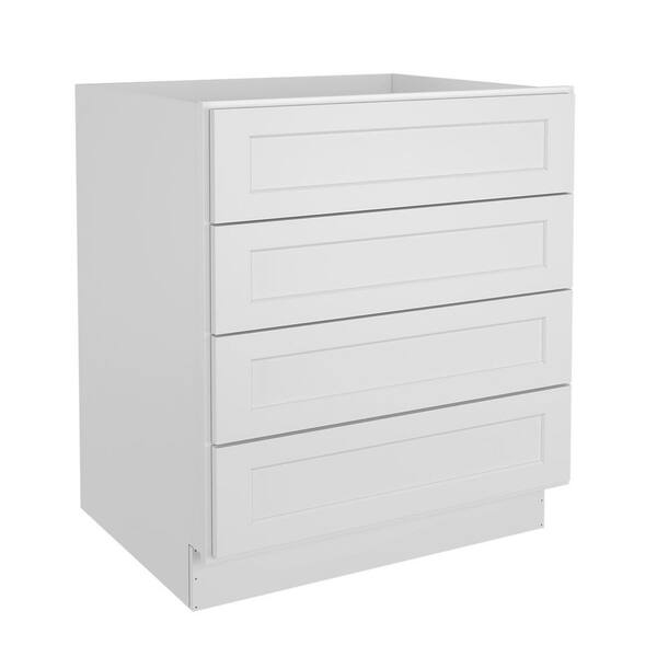 30 in. W x 24 in. D x 34.5 in. H in Shaker White Plywood Ready to Assemble Floor Base Kitchen Cabinet with 4 Drawers