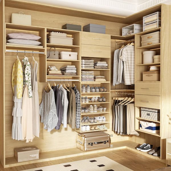 • Custom design with storage shelves, rods, and drawers