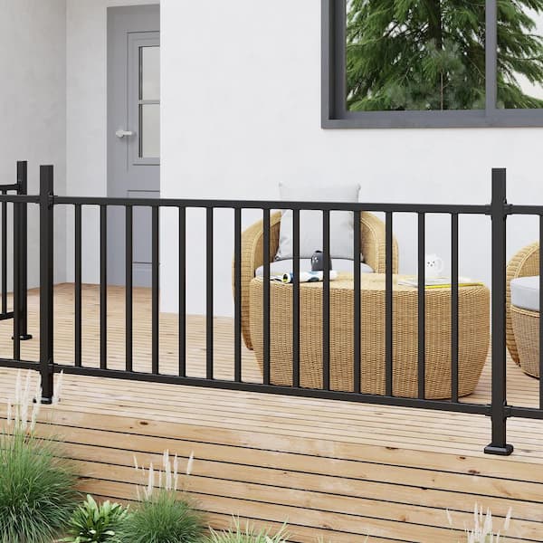 32.5 in. H x 72 in. W Black Metal Flat Railing Kit for Porch, Balcony, Deck without Post