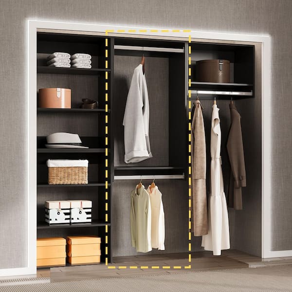 34.5 in. Black Walk-in Modular Double Hanging Tower Unit with 1-Shelf, Wall Mount Wood Closet System