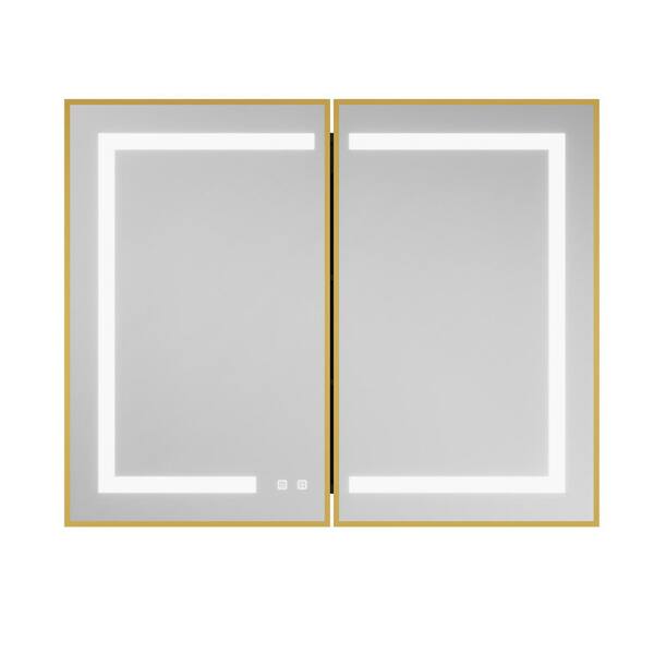 36 in. W x 30 in. H Bright Rectangular Gold Wall Mount LED Lighted Medicine Cabinet with Mirror
