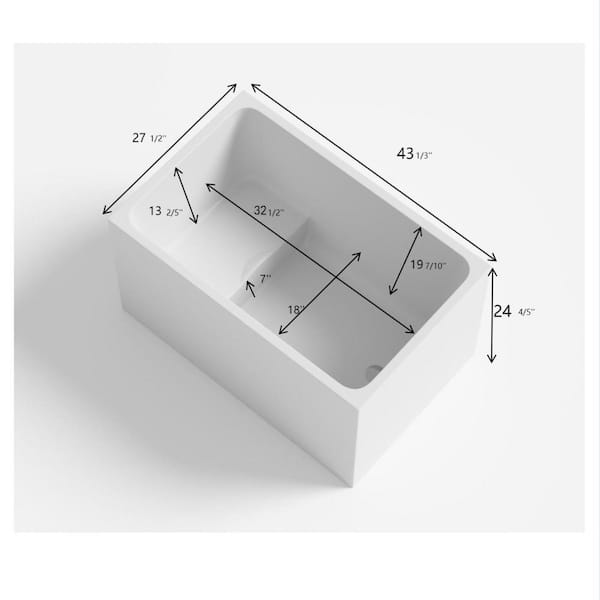 43 in. x 28 in. Soaking Bathtub with Right Drain in Gloss White Finish