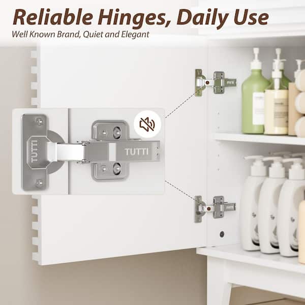 48 in. Bath Vanity Cabinet Without Top, White, Mid-Century with 2 Soft-Close Doors, Wood Grain Laminate, Unassembled