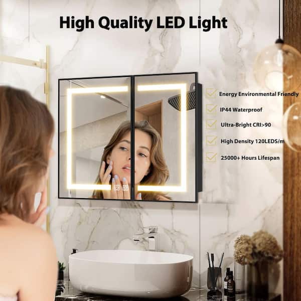 48 in. W x 32 in. H Large Rectangular Black Wall Mount LED Lighted Medicine Cabinet with Mirror