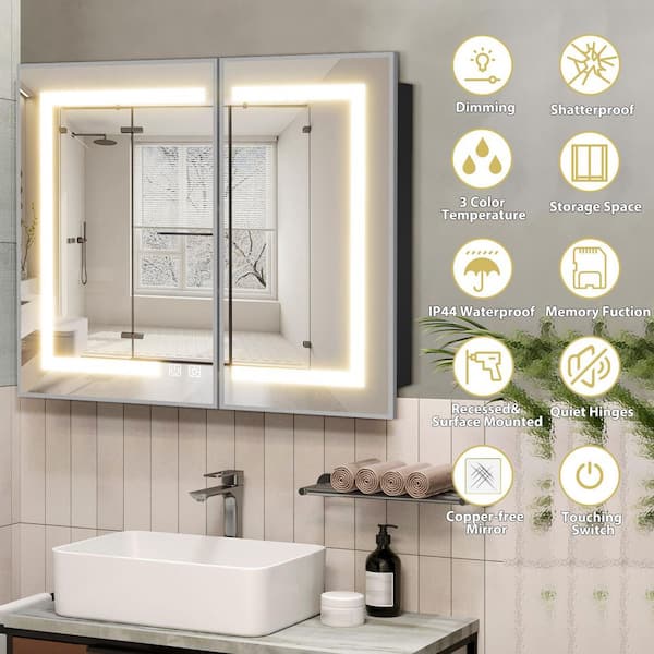 • Rust-proof, moisture-resistant metal frame, 3-color temp/dimmable