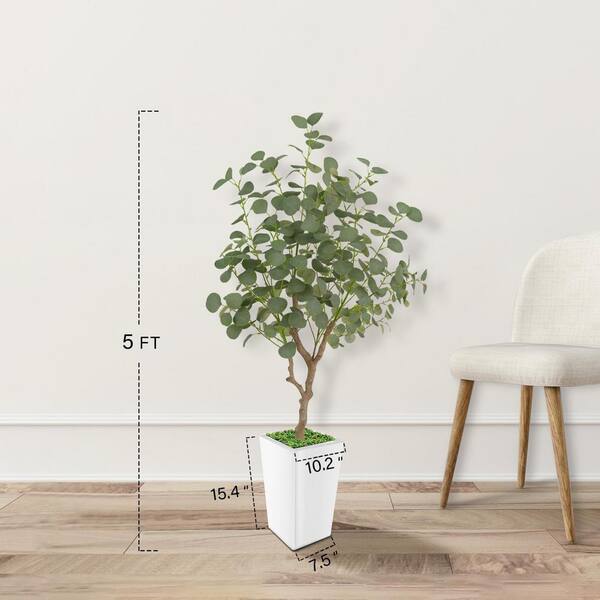5 ft. Artificial Eucalyptus Tree in Pot Ideal for Home Decor and Housewarming Gift